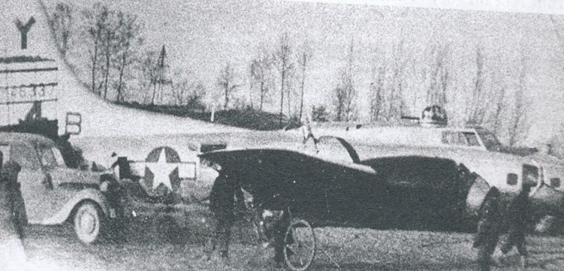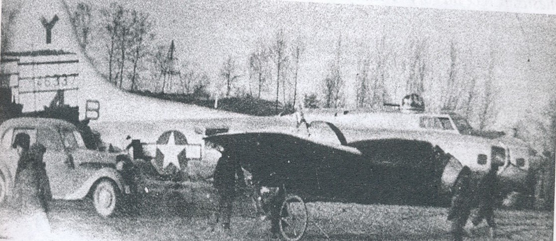 W obozie tym przebywali Francuzi, Belgowie i Holendrzy. Lądowanie wykonali ze schowanym podwoziem, superprecyzyjnie. Zatrzymali się ok. 15 metrów przed głęboką fosą. W ten sposób cała 10 osobowa załoga się uratowała. Jak wspominał naoczny świadek, byli zadowoleni i nie chcieli się ukrywać przed Niemcami. Zdawali sobie sprawę, że gdyby zostali wykryci, mogłoby się to skończyć tragicznie dla miejscowej ludności. Poczęstowali ludzi słodyczami, ktoś tam dostał kurtkę skórzaną. W krótkim czasie pojawiła się żandarmeria niemiecka, która zauważyła, że wśród załogi jeden jest żydem, którego natychmiast chcieli oddzielić od załogi. Dzielna postawa dowódcy załogi, który się sprzeciwił i całą załoga dostała się do niewoli, a po wojnie wszyscy wrócili do USA.