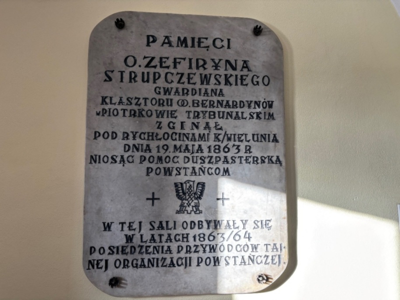Tablica upamiętniająca udział ojców bernardynów w powstaniu styczniowym. Fot. z archiwum autorów.