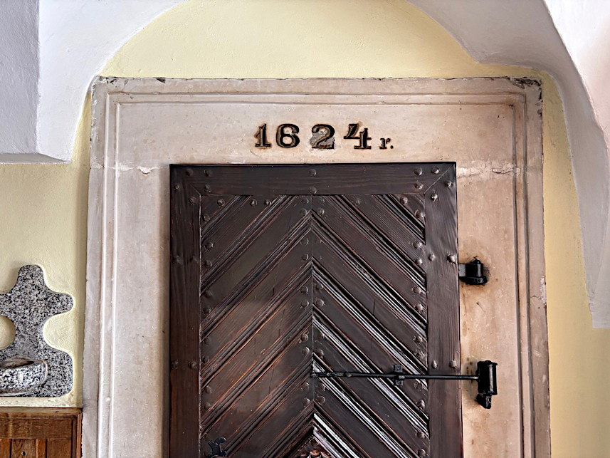 Data założenia klasztoru nad drzwiami prowadzącymi do kościoła. Fot. z archiwum autorów.