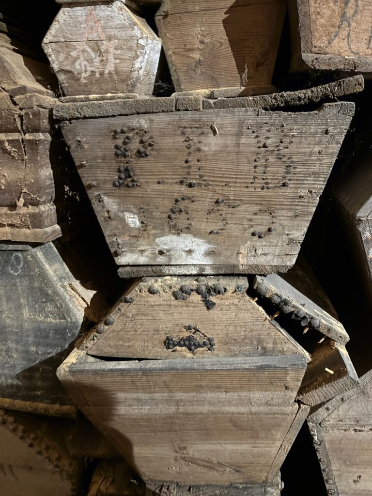 Jedna z nielicznych zniszczonych przez czas trumien ze szczątkami kobiety, na palcu której zachował się pierścionek. Fot. z archiwum autorów.