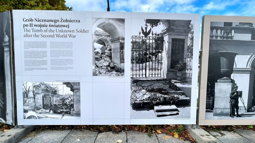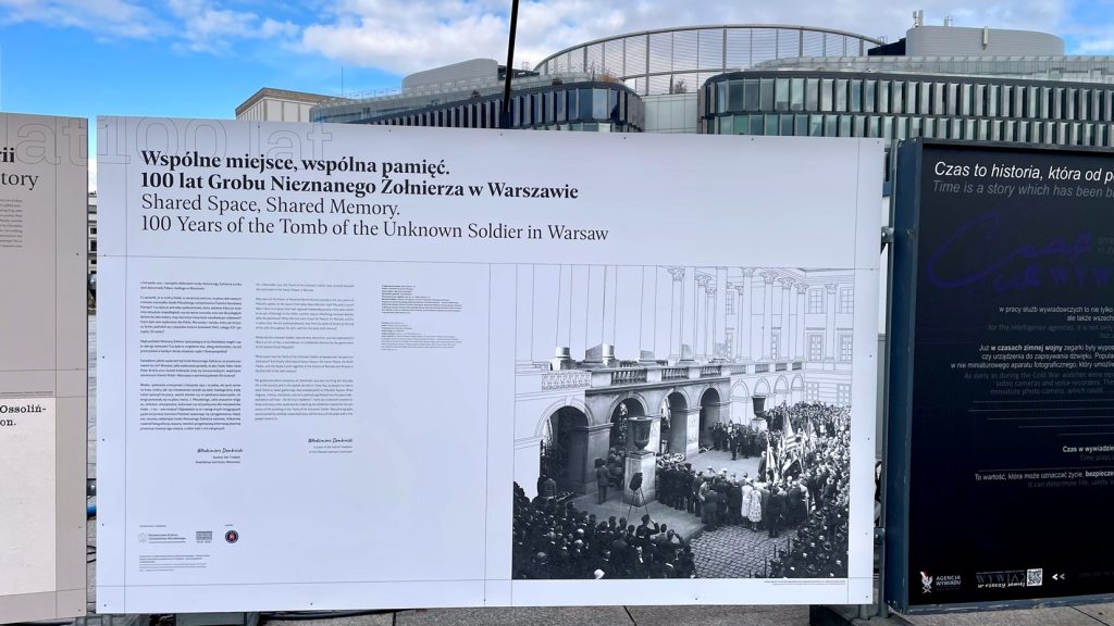 Jak to miejsce wyglądało przed wojną? Plenerowa ekspozycja „Wspólne miejsce, wspólna pamięć. 100 lat Grobu Nieznanego Żołnierza w Warszawie”, umieszczona tuż obok pomnika na placu Piłsudskiego, przypomina, jak wyglądał on przed zniszczeniem Pałacu Saskiego i jak wielkie emocje towarzyszyły jego powstaniu w 1925 roku.