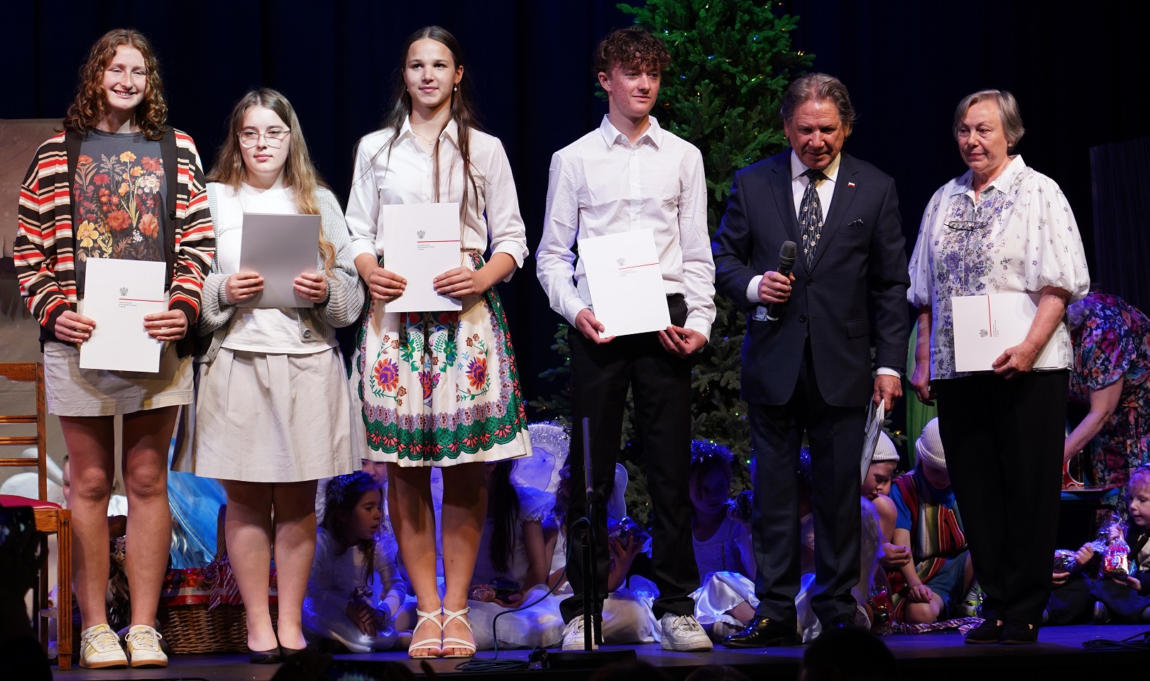 Na uroczystość przybył także p. Andrzej Soszyński, Honorowy Konsul Generalny w Melbourne oraz p. Katarzyna Skowrońska, nauczycielka języka polskiego z Victorian School of Languages. Pan Konsul podkreślił, jak ważna jest znajomość języka polskiego, szczególnie w kontaktach z rodziną w Polsce, w osobistym rozwoju. Następnie wręczył tegorocznym maturzystom dyplomy Konsula Generalnego RP.