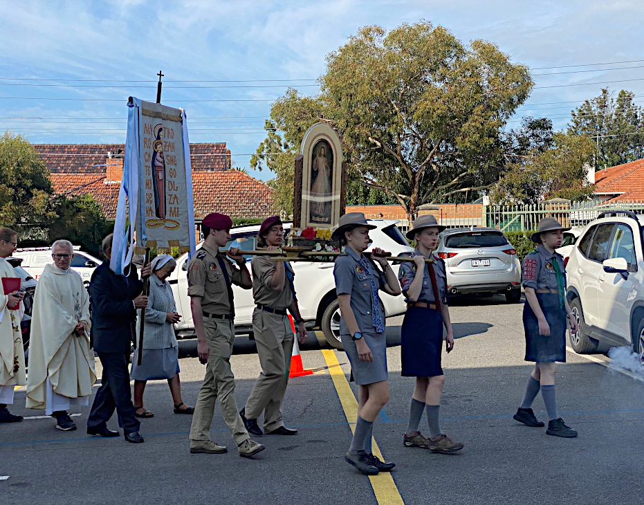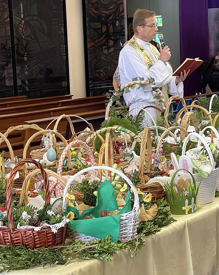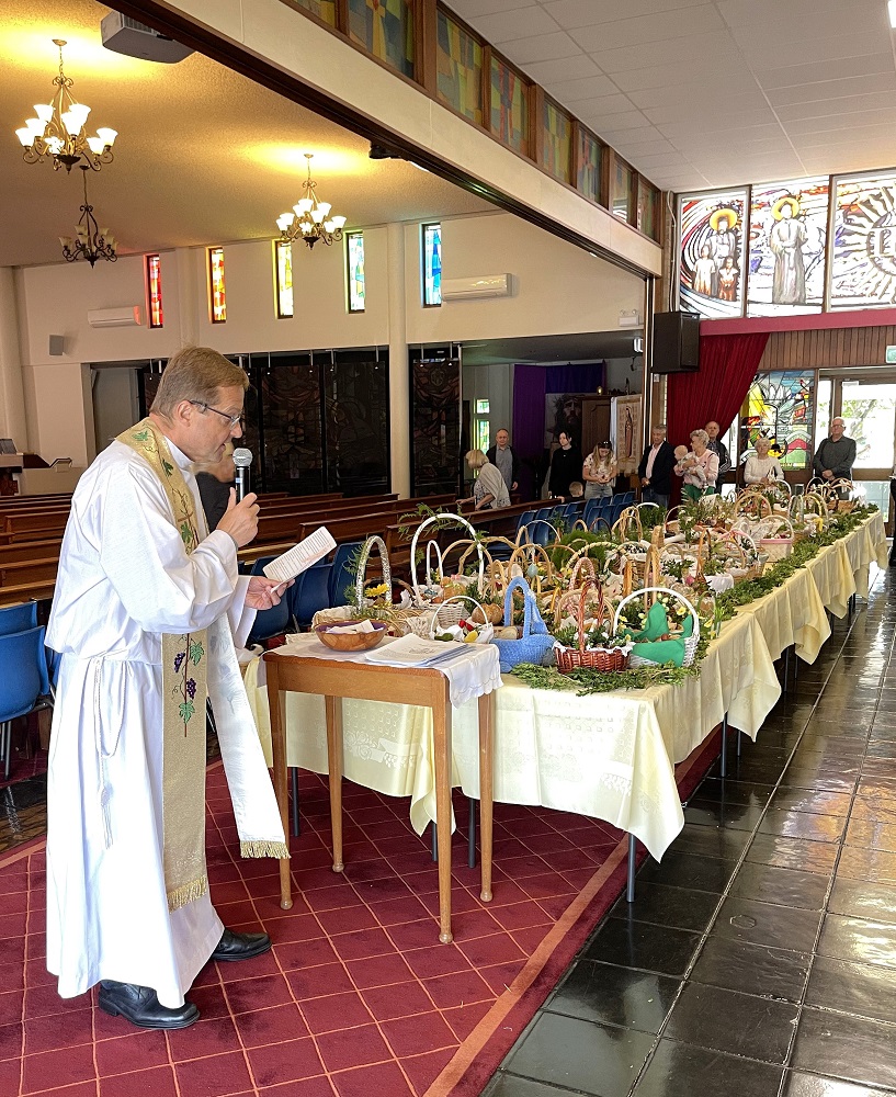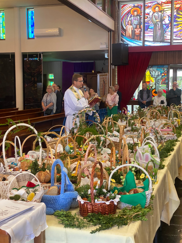 Do Sanktuarium Maryjnego w Essendon przybyli licznie Polacy i potomkowie Polaków z pięknie przybranymi koszykami. W tym roku pokarmy na wielkanocne stoły święcił ks. Krystian Sowa SJ, który w głosił rekolekcje w okresie Wielkiego Postu w ośrodkach duszpasterskich w Melbourne i Adelaide.