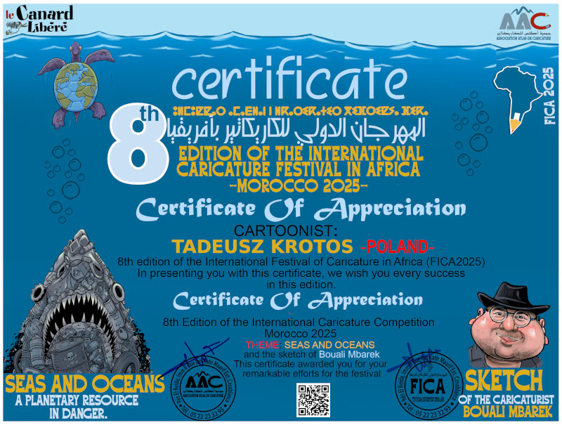 Organizatorem „8 th edition of the International Caricature Festival in Africa” Marocco 2025,jest „FICA in AFRICA /FICA/”.